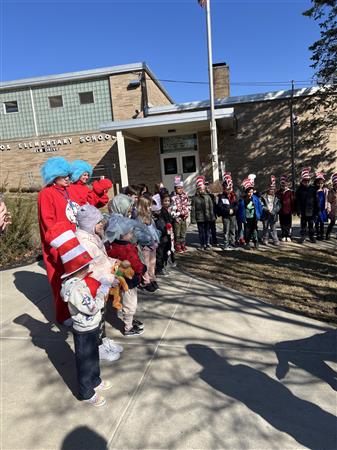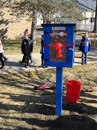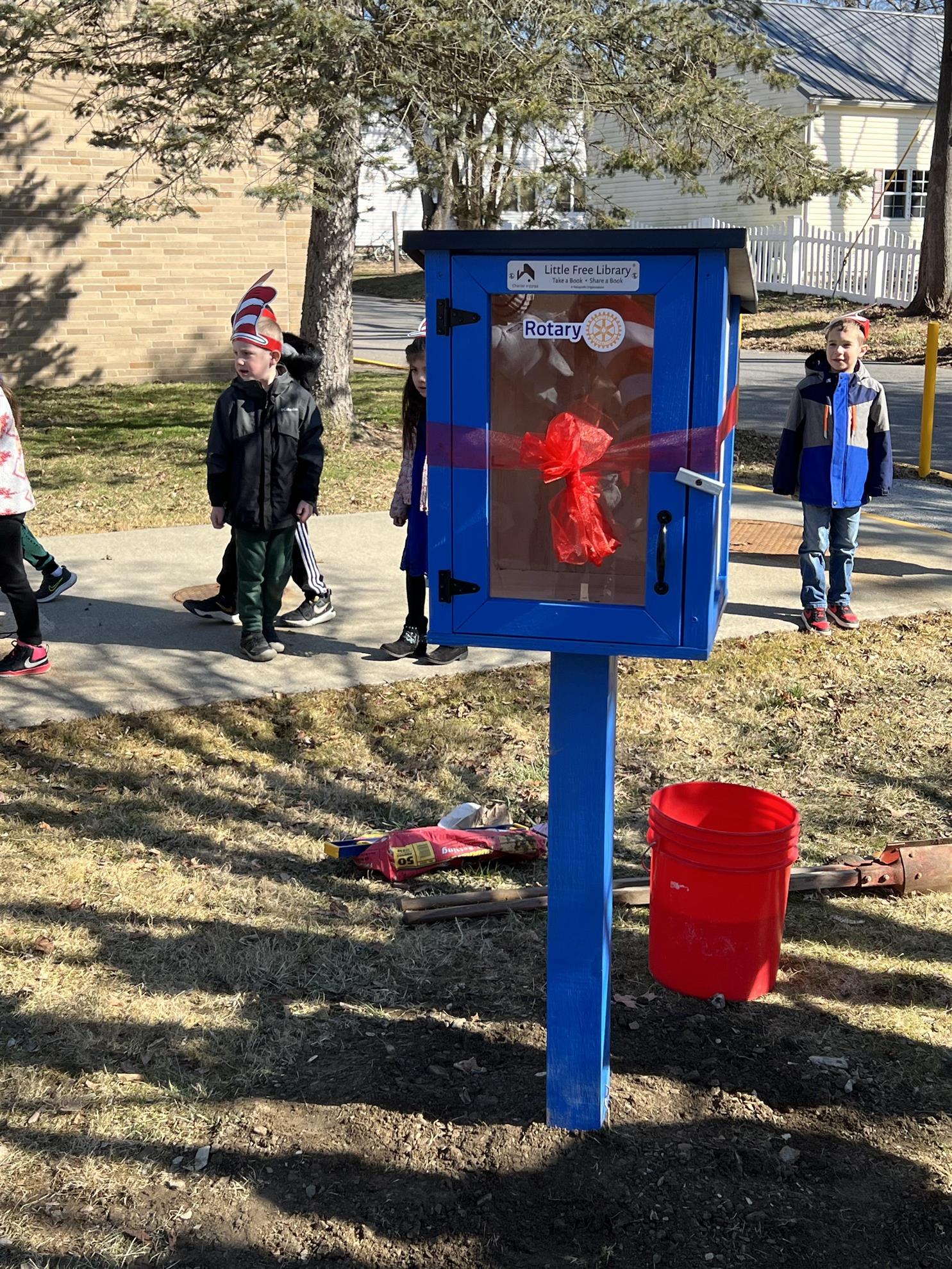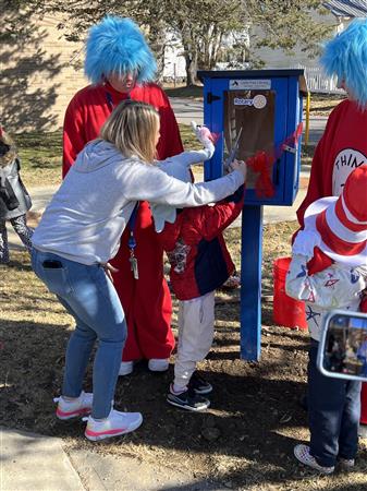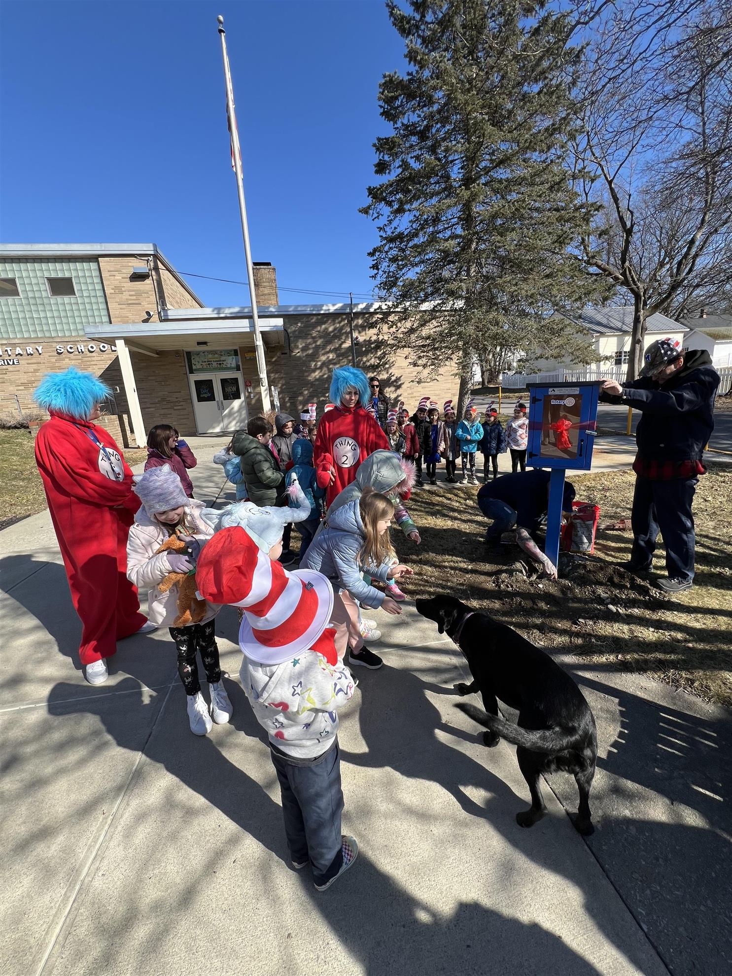 Exciting day cutting the ribbon on the Millbrook Rotary Club Free Little Library at Elm Elementary! 🎉 The 1st graders stole the show in their Dr. Seuss-themed outfits, celebrating Dr. Seuss’s birthday and Read Across America Day!